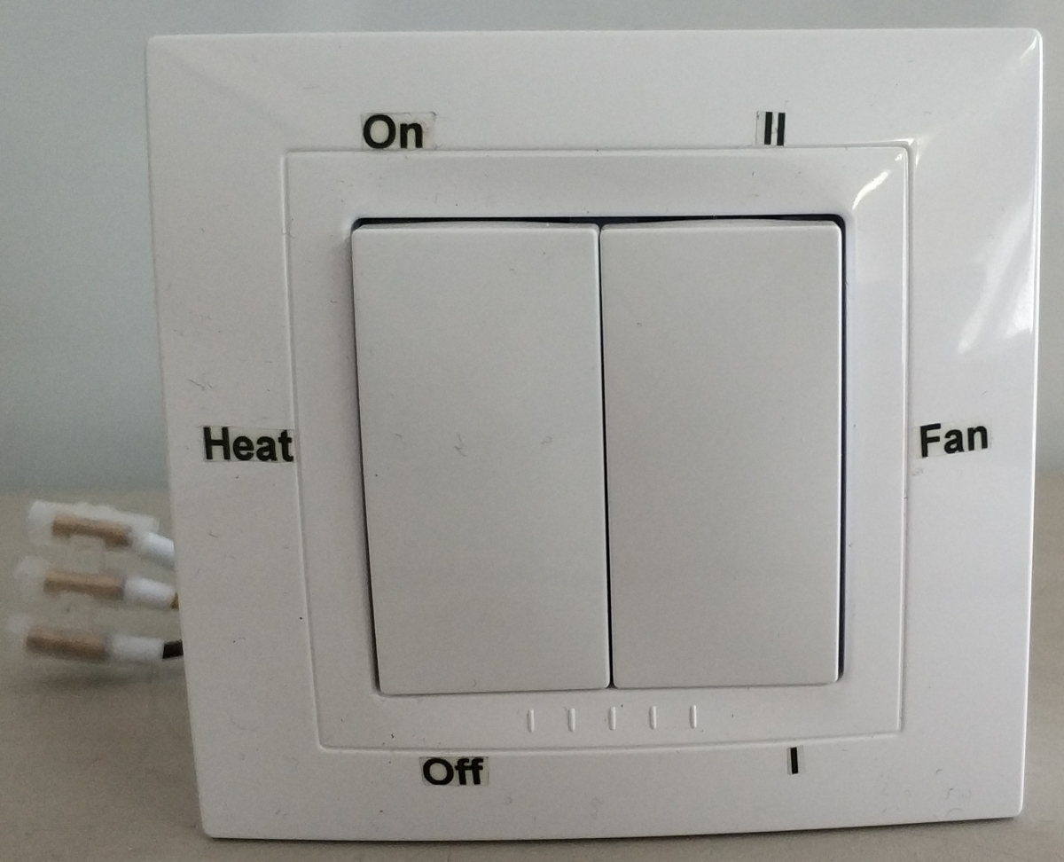 Модель Салюс TkV-06 ПС-2 поставляется в комплекте с двухскоростным пультом управления и имеет 2 фиксированные установки скорости вентилятора - Минимальная (ночной режим) и Максимальная (дневной режим). Управление осуществляется с пульта.