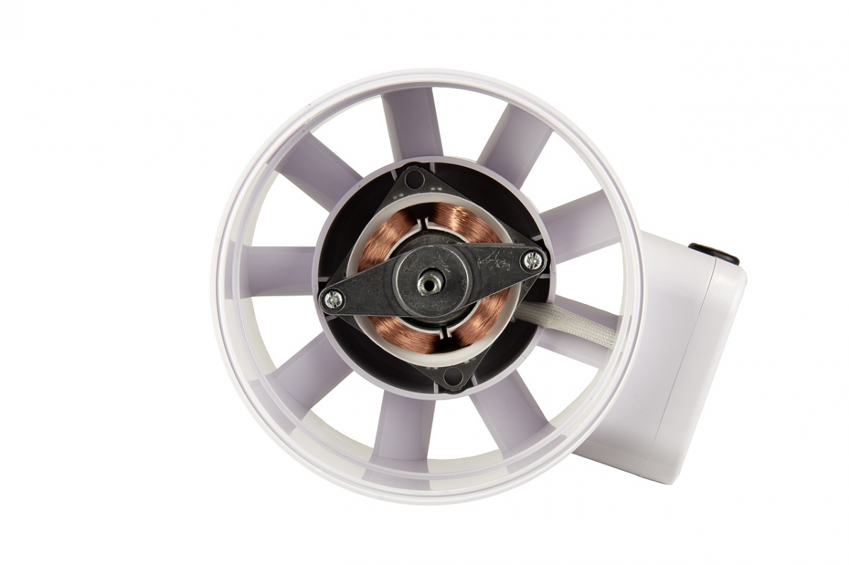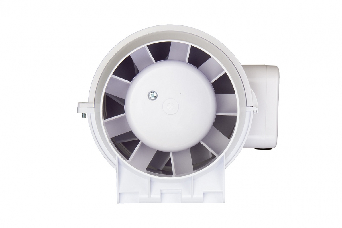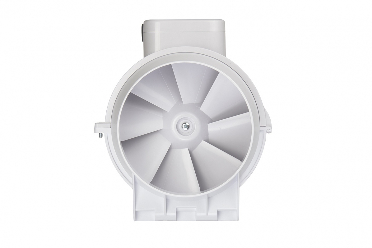 Рабочее колесо смешанного типа с диагональными лопатками, изготовлено из АБС пластика, сочетает в себе высокую производительность осевых вентиляторов и высокое давление центробежных. Лопасти выпрямителя корпуса, являясь частью рабочего колеса, сглаживают поток воздуха во избежание проблем с нисходящими потоками