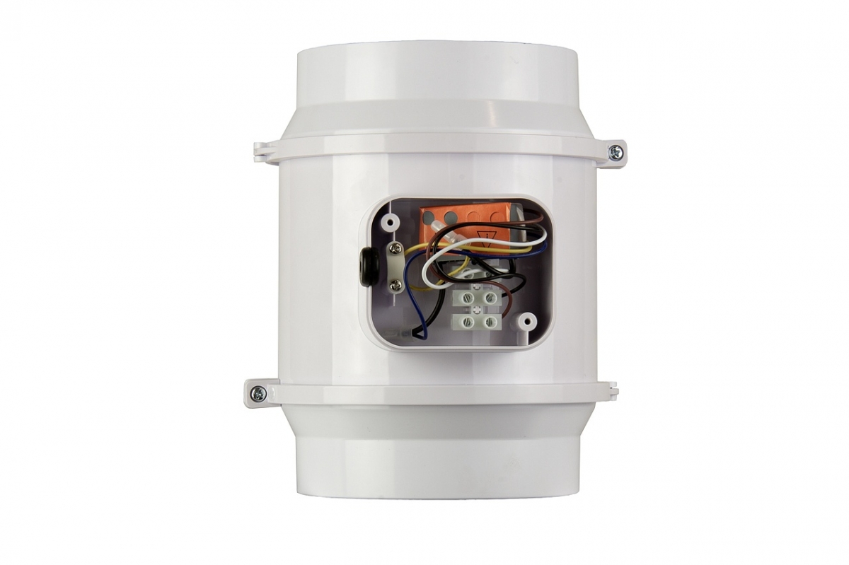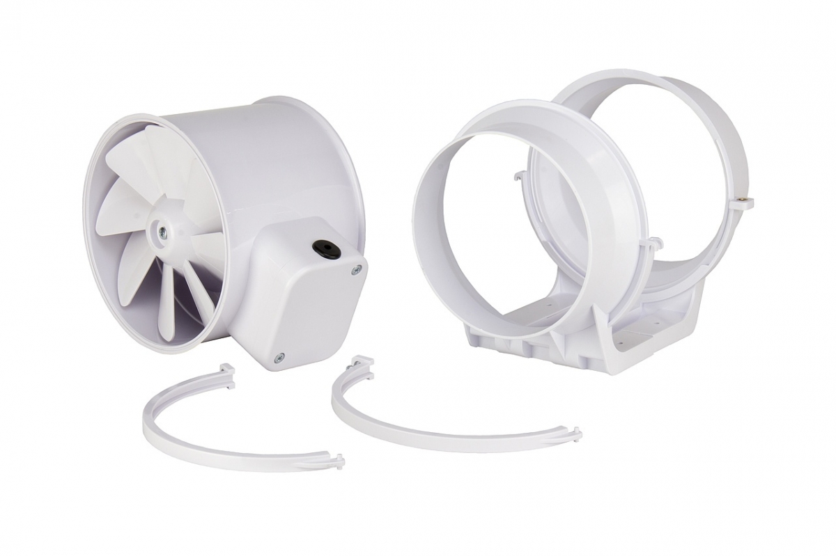 Вентилятор состоит из двух частей: монтажного кронштейна и закрепленного на нем корпуса вентилятора. Все корпусные элементы: корпус, патрубки, кронштейны и хомуты изготовлены из АБС пластика, имеют повышенный класс брызгозащиты и обладают диэлектрическими свойствами. Оборудован внешней клеммной коробкой с возможностью переключения скоростей.