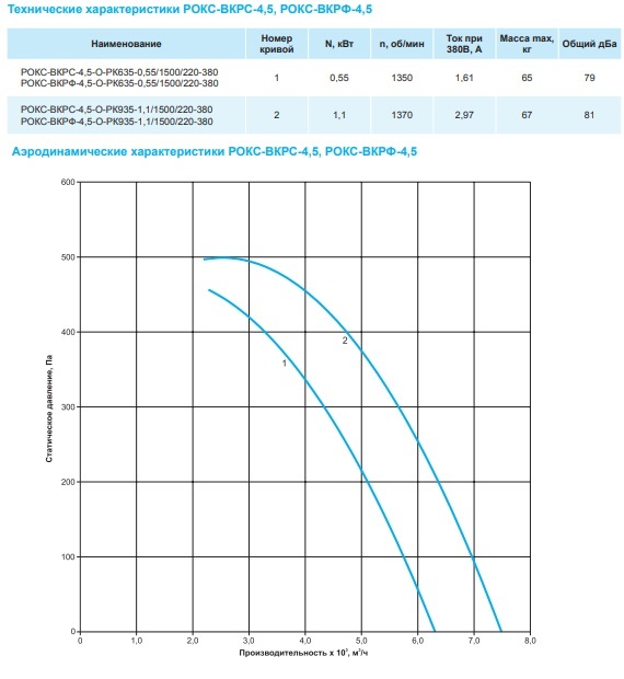 Вентиляторы выпускают с двумя типами рабочих колес РК635 и РК935 с различными расходными характеристиками.