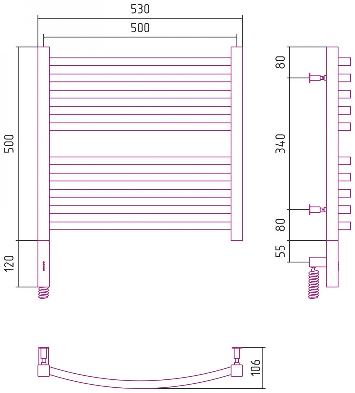 Полотенцесушитель электрический Сунержа Аркус 3.0 500x500