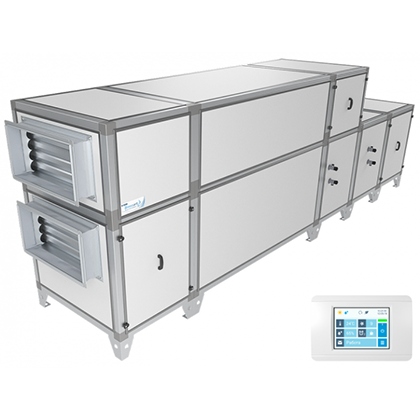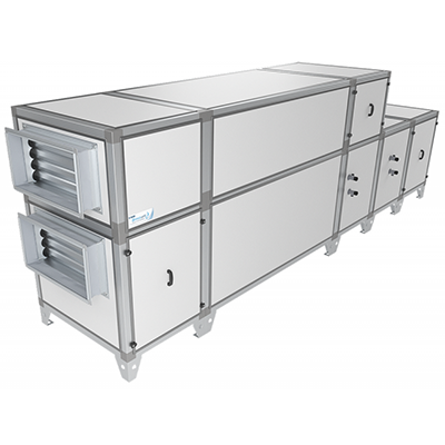 - Приточно-вытяжная установка напольного типа с противоточным пластинчатым рекуператором, системоа защиты от замерзания.